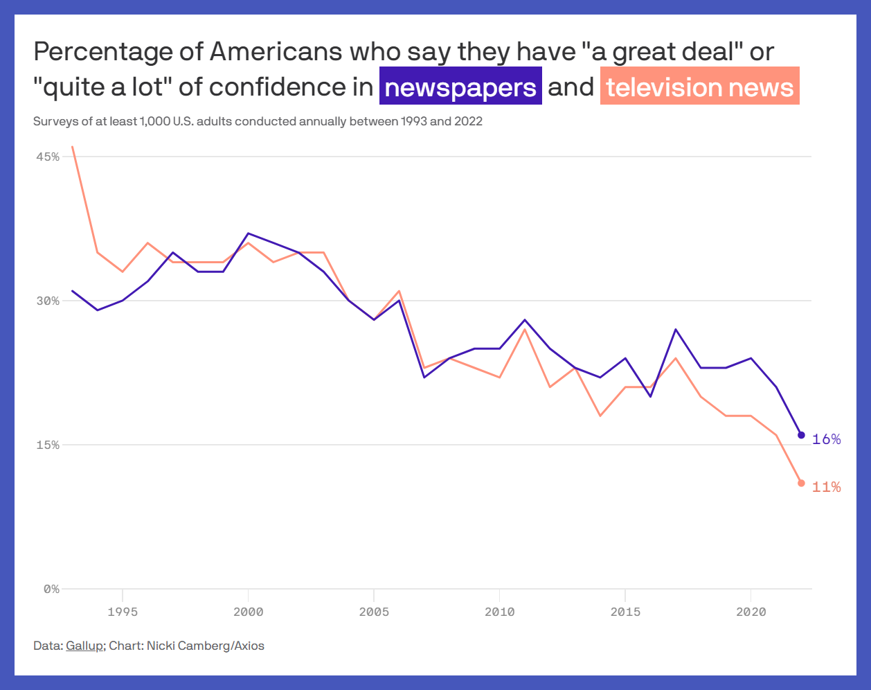 Given this media corruption, no wonder Americans’ overall trust in media collapses to historic new lows, per Gallup Polling: