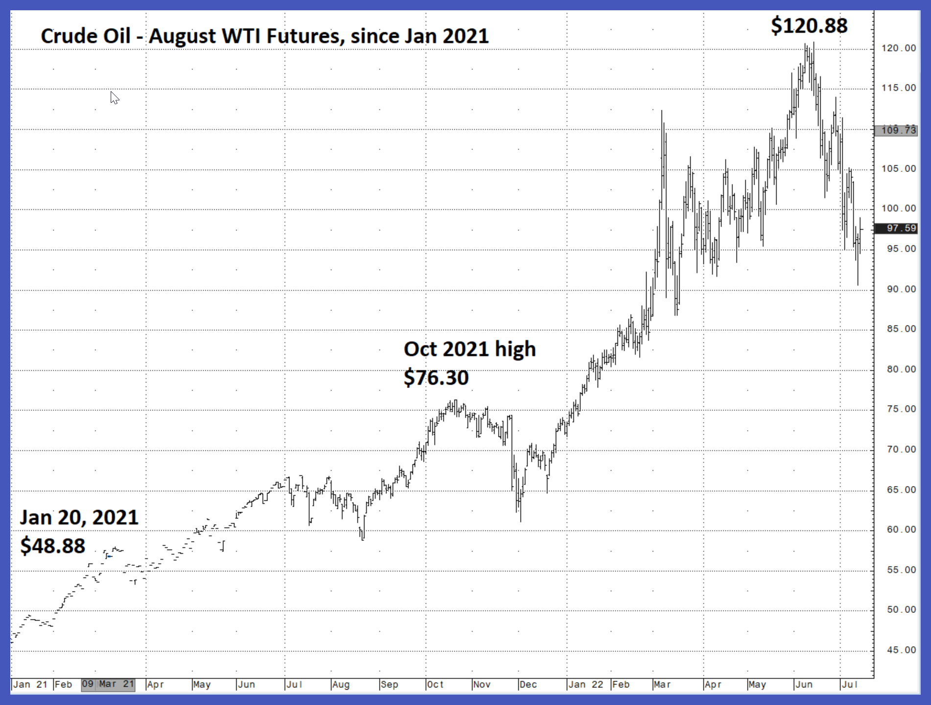 Many analysts correctly point to the sharp decline in recent weeks in some key prices, especially in Crude Oil and Gasoline. But, keep these declines in context. Right now, the benchmark WTI Crude price was still up over $25/barrel in just this year 2022. Looking bigger picture, since Biden took office, Crude Oil rose from $48.88 on Inauguration Day to almost exactly double into Friday’s closing price of $97.59.