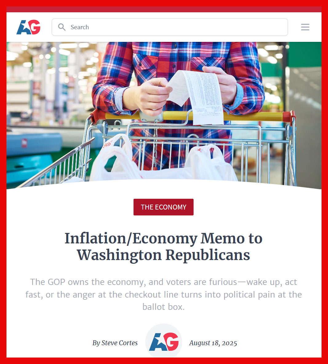 This erosion of buying power flows largely from an embattled U.S. dollar. Bitcoin has rocketed past $117,000 per coin, gold is at record highs, and the euro has a stellar 2025 vs. the Buck. It’s erosion, and voters see it and live it.