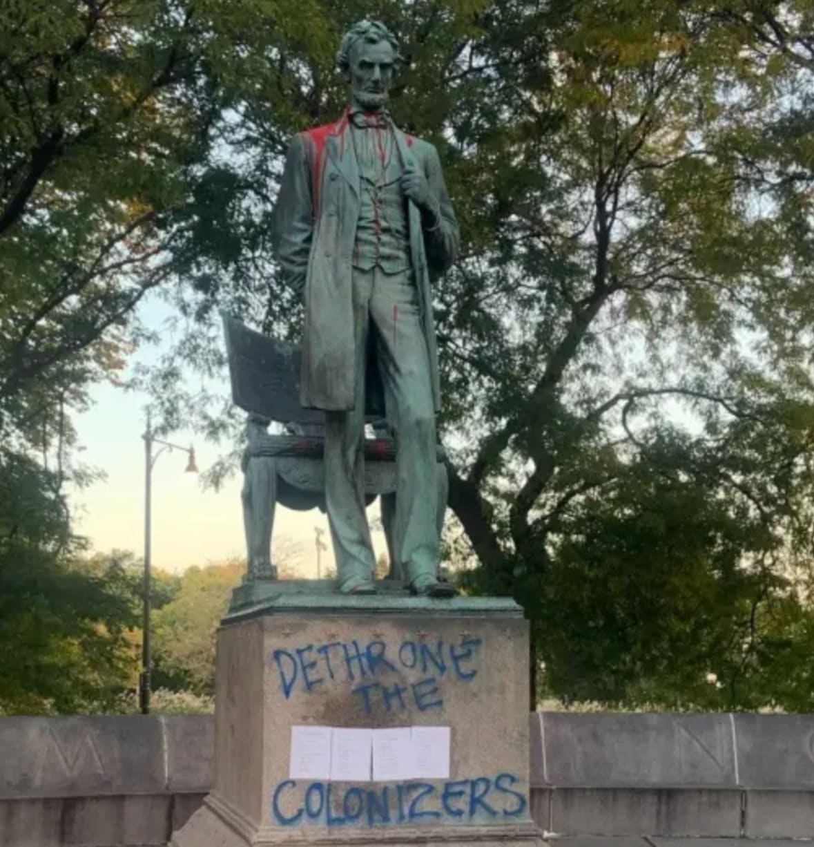 On Columbus Day in Chicago, a group of radicals defaced an iconic statue of Abraham Lincoln, in his namesake park on the city’s north side. The vandals smeared the statue with blood-red paint and mar…